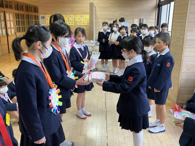 もうすぐ川之江小学校を巣立っていく6年生のみなさん、集団登校や児童会活動、委員会活動・・・全校のみんなのリーダーとして様々な場面で精一杯活動してました。6年生を送る会・送別遠足を前に、6年生への感謝の気持ちを込めて作ったプレゼントを渡しました。本当にありがとうございました。後しばらく、よろしくお願いします。