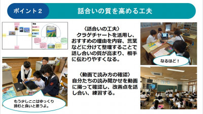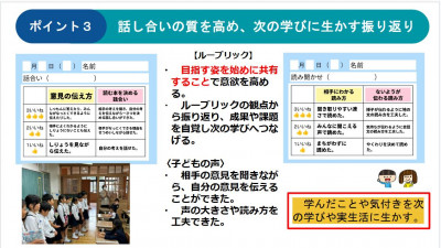読み聞かせをするために、国語の授業で、以下のスライドのような授業実践がなされていました。
